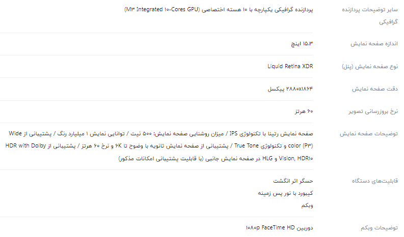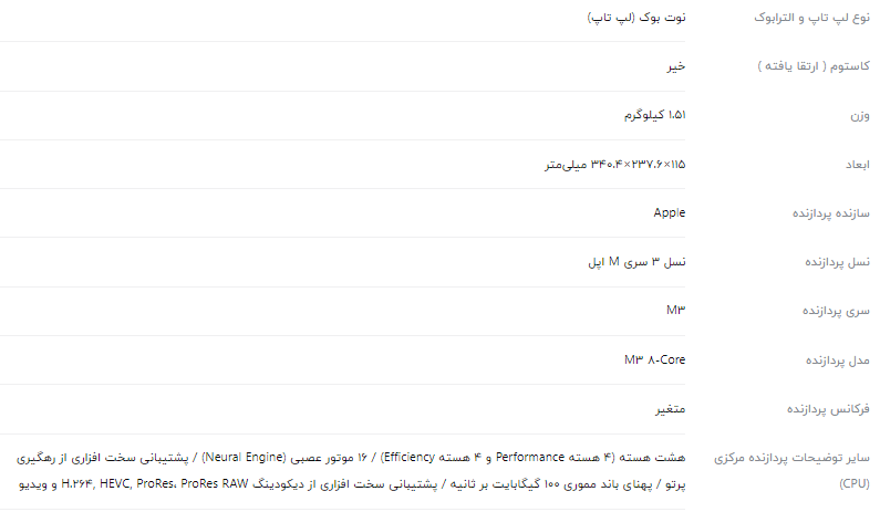 اگر به دنبال یک لپ تاپ حرفهای و جذاب و در عین حال مناسب برای کارهای معمول و روزمره میگردید، بدن شک سری لپ تاپ مکبوک اپل از بهترین انتخابها برای شما خواهد بود. لپ تاپ مدل MacBook Air MXD13 M3 2024 با داشتن اندازه 15.3 اینچی و وزن 1.51 کیلوگرم، انتخابی عالی برای حمل روزمره است و بدون هیچ مشکلی میتوانید آن را همواره همراه خود داشته باشید. صفحه نمایش جذاب Retina IPS با روشنایی 500 نیت و پشتیبانی از یک میلیارد رنگ، جلوه بسیار زیبا و باکیفیتی دارد و میتوانید از استفاده از آن لذت ببرید. از طرف دیگر پردازنده Apple M3 در کنار رم 16 گیگابایتی و پردازنده گرافیکی یکپارچه اپل، مجموعه بسیار خوبی را در کارهای مختلف به نمایش میگذارد. در کنار اینها حافظه 512 گیگابایتی از نوع SSD فضای لازم برای ذخیره اطلاعات ضروری را در اختیار شما قرار میدهد. وبکم باکیفیت، حسگر اثر انگشت سریع و حساس، پشتیبانی از شارژر MagSafe و پورتهای کاربردی از دیگر ویژگیهای خوب این لپ تاپ هستند که آن را به گزینه خرید مناسبی تبدیل میکنند.