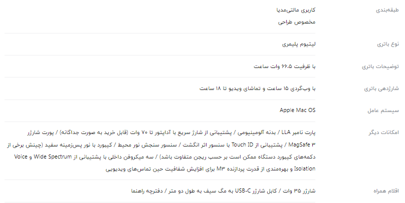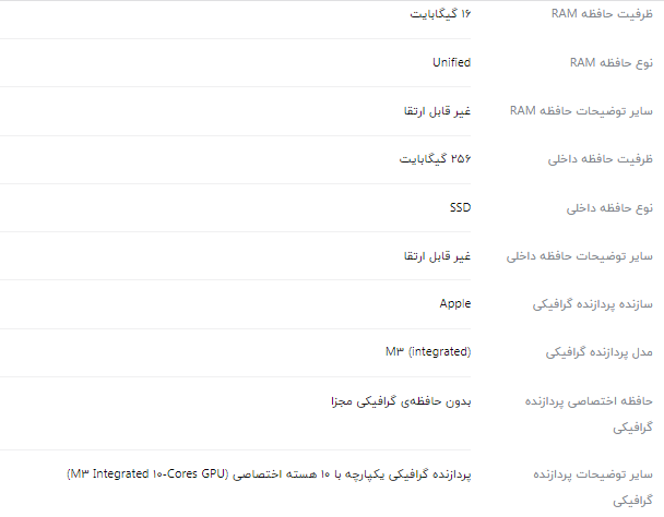 اگر به دنبال یک لپ تاپ حرفهای و جذاب و در عین حال مناسب برای کارهای معمول و روزمره میگردید، بدن شک سری لپ تاپ مکبوک اپل از بهترین انتخابها برای شما خواهد بود. لپ تاپ مدل MacBook Air M3 2024 با داشتن اندازه 15.3 اینچی و وزن 1.51 کیلوگرم، انتخابی عالی برای حمل روزمره است و بدون هیچ مشکلی میتوانید آن را همواره همراه خود داشته باشید. صفحه نمایش جذاب Retina IPS با روشنایی 500 نیت و پشتیبانی از یک میلیارد رنگ، جلوه بسیار زیبا و باکیفیتی دارد و میتوانید از استفاده از آن لذت ببرید. از طرف دیگر پردازنده Apple M3 در کنار رم 16 گیگابایتی و پردازنده گرافیکی یکپارچه اپل، مجموعه بسیار خوبی را در کارهای مختلف به نمایش میگذارد. در کنار اینها حافظه 256 گیگابایتی از نوع SSD فضای لازم برای ذخیره اطلاعات ضروری را در اختیار شما قرار میدهد. وبکم باکیفیت، حسگر اثر انگشت سریع و حساس، پشتیبانی از شارژر MagSafe و پورتهای کاربردی از دیگر ویژگیهای خوب این لپ تاپ هستند که آن را به گزینه خرید مناسبی تبدیل میکنند.