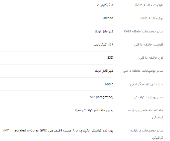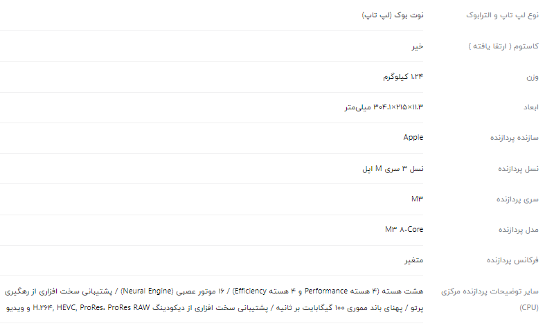 اگر به دنبال یک لپ تاپ حرفهای و جذاب و در عین حال مناسب برای کارهای معمول و روزمره میگردید، بدن شک سری لپ تاپ مکبوک اپل از بهترین انتخابها برای شما خواهد بود. لپ تاپ مدل MacBook Air MRXV3 M3 2024 با داشتن اندازه 13.6 اینچی و وزن 1.24 کیلوگرم، انتخابی عالی برای حمل روزمره است و بدون هیچ مشکلی میتوانید آن را همواره همراه خود داشته باشید. صفحه نمایش جذاب Retina IPS با روشنایی 500 نیت و پشتیبانی از یک میلیارد رنگ، جلوه بسیار زیبا و باکیفیتی دارد و میتوانید از استفاده از آن لذت ببرید. از طرف دیگر پردازنده Apple M3 در کنار رم هشت گیگابایتی و پردازنده گرافیکی یکپارچه اپل، مجموعه بسیار خوبی را در کارهای مختلف به نمایش میگذارد. در کنار اینها حافظه 256 گیگابایتی از نوع SSD فضای لازم برای ذخیره اطلاعات ضروری را در اختیار شما قرار میدهد. وبکم باکیفیت، حسگر اثر انگشت سریع و حساس، پشتیبانی از شارژر MagSafe و پورتهای کاربردی از دیگر ویژگیهای خوب این لپ تاپ هستند که آن را به گزینه خرید مناسبی تبدیل میکنند.