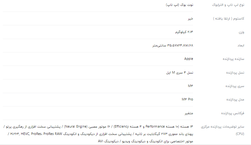 آینده را با MacBook Pro MX2X3 2024 تجربه کنید! صفحه نمایش 16.2 اینچی خیرهکننده و پردازنده قدرتمند M4 Pro تجربهای بینظیر از سرعت و کارایی را به ارمغان میآورد. با 24GB رم و 512GB حافظه SSD، هیچ محدودیتی پیش روی شما نیست. مناسب برای حرفهایها و خلاقان. همین امروز خرید کنید و قدرت را در دستان خود احساس کنید!