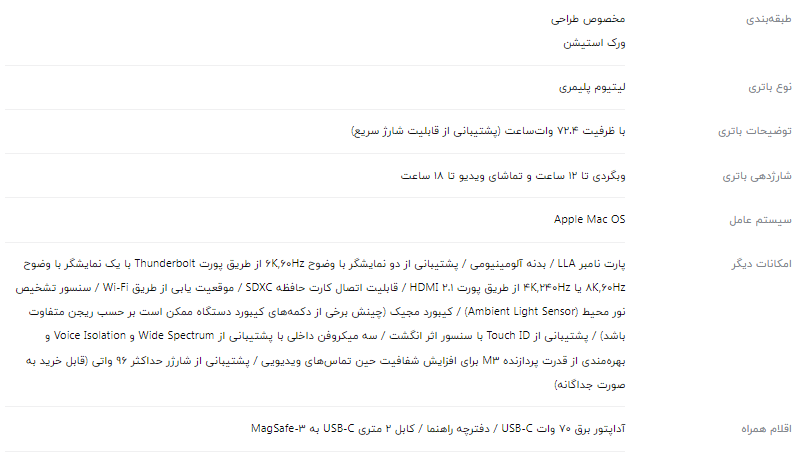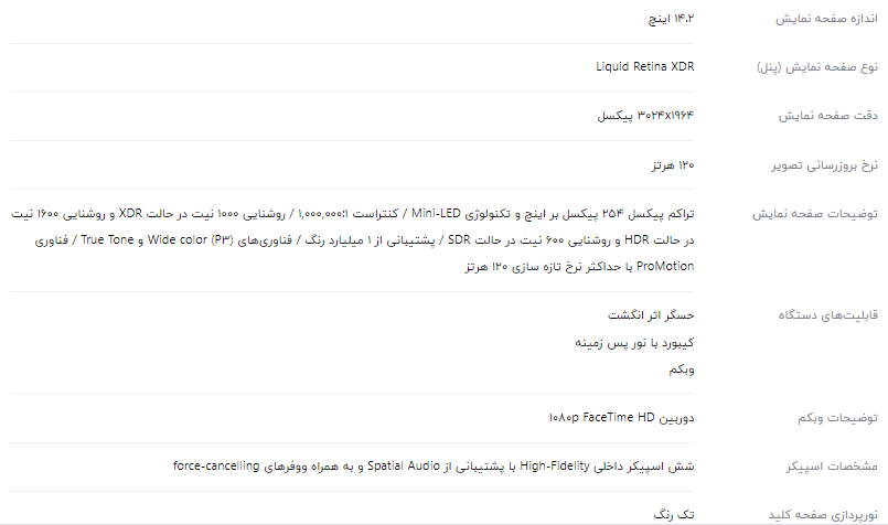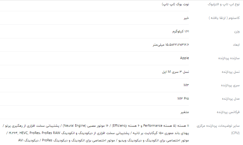 با مکبوک پرو 14.2 اینچی اپل مدل MRX63 2023 تجربهای بینظیر از عملکرد و طراحی را تجربه کنید. با پردازنده قدرتمند M3 Pro، 18 گیگابایت رم و 512 گیگابایت SSD، این دستگاه برای حرفهایها و خلاقان ایدهآل است. با خرید این لپتاپ از تجربه سریع و بینقص اپل بهرهمند شوید و به راحتی پروژههای خود را به سطحی بالاتر ببرید. همین امروز اقدام کنید و تفاوت را احساس کنید!